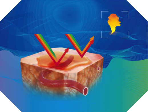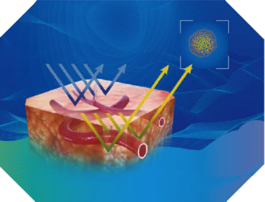 RDI(Red Dichromatic Imaging)は、Red・Amber・Greenの3色の特殊光を巧みに組み合わせることにより、それぞれの波長がもつヘモグロビン吸収率や組織反射率、光散乱特性の違いを活用して粘膜深部までコントラストを形成し、従来の内視鏡システムでは視認困難だった深部血管構造や出血部位を鮮明に捉えることを可能にします。